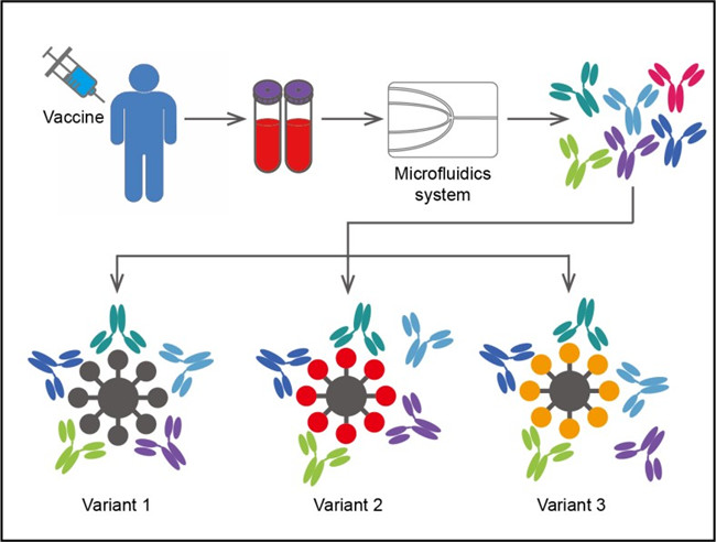 从疫苗接种者血中分离新冠病毒中和抗体示意图