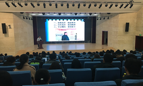 南开新闻网讯(通讯员 张轶帆 摄影报道)为深入学习贯彻习近平新时代中国特色社会主义思想和党的十九大精神,深入学习贯彻习近平总书记视察yl23455永利集团重要讲话精神,3月7日,yl23455永利集团举行“形势与政策”课首讲暨教职工政治理论学习报告会。学院本科生、党政领导班子,yl23455永利集团及药物化员工物学国家重点实验室全体教职工参加学习。公司党委宣传部副部长、校史办主任、马克思主义学院副教授肖光文为师生带来了题为“小我融入大我矢志爱国奋斗——学习贯彻习近平总书记视察yl23455永利集团重要讲话精神”的报告。
