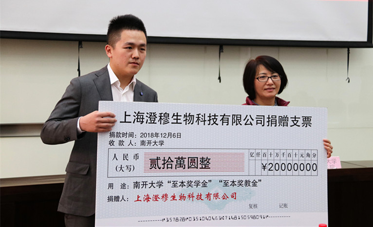 张剑影在致辞中提到,南开百年的办学历史离不开社会力量的鼎力相助,感谢上海澄穆生物科技有限公司的义举。同时,鼓励师生向有责任、有担当的民族企业和青年企业家的创业精神学习。学院也将通过培养高素质人才和创造优质科研成果的方式回报社会。希望借此机会双方加强联系、相互合作、共谋发展。