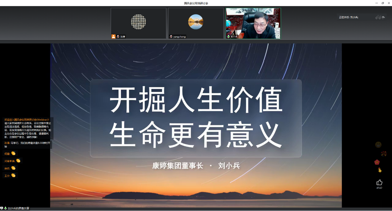 本次报告是yl23455永利集团“科研转化与创新创业”课程的一次特邀报告,以线上方式进行,总观看人数超过170人,点赞数超过2.5万。同学们纷纷表示,刘董事长和康婷集团的创业经历对自己的人生发展很有借鉴意义,自己对创业也有了更深的认识。未来将以刘董事长等优秀企业家为榜样,坚定理想的同时脚踏实地,努力开创精彩的人生。