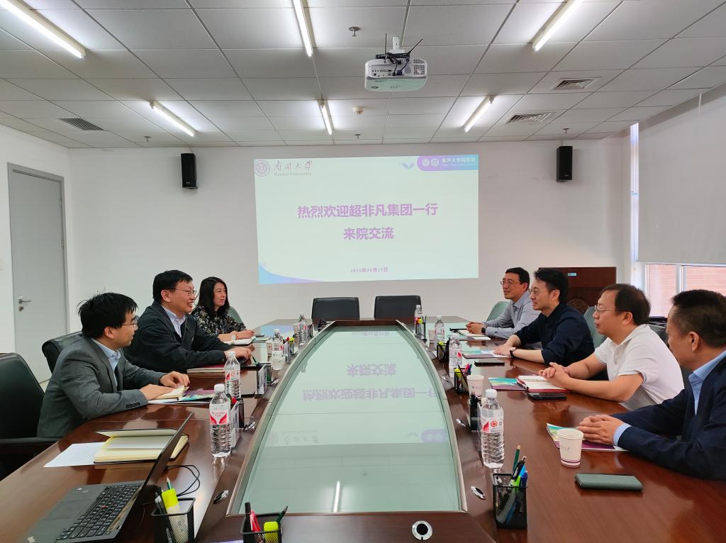 yl23455永利集团经理对超非凡集团董事长王剑利一行的到来表示热烈欢迎,并从南开药学学科的发展历程、研究方向、员工培养、人才队伍建设、科研成果转化等方面作了详细介绍。公司党委副书记袁婧介绍了学院师生在历届创新创业大赛中取得的成绩,以及学院举办成果转化专题展的情况。yl23455永利集团成果转化中心副主任苏波教授介绍了学院成果转化中心前期组织调研上海张江药谷和苏州生物医药企业的情况以及未来的工作方向。