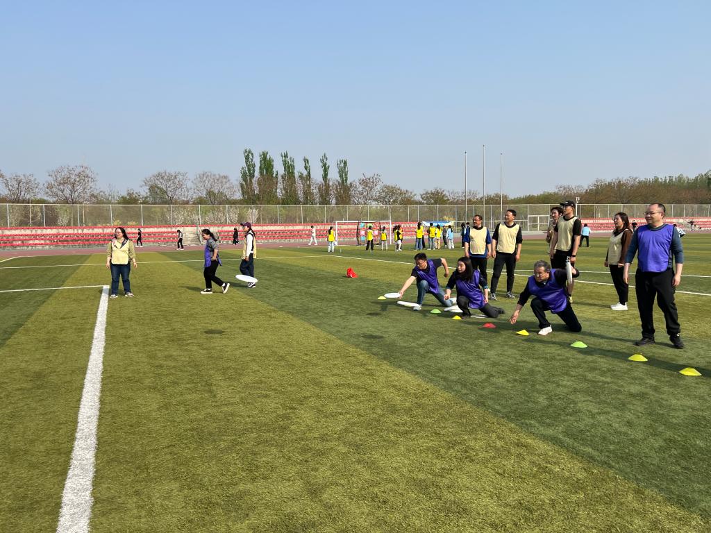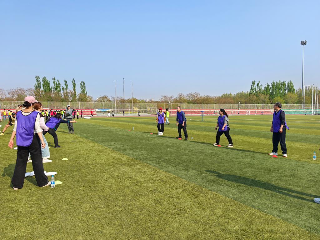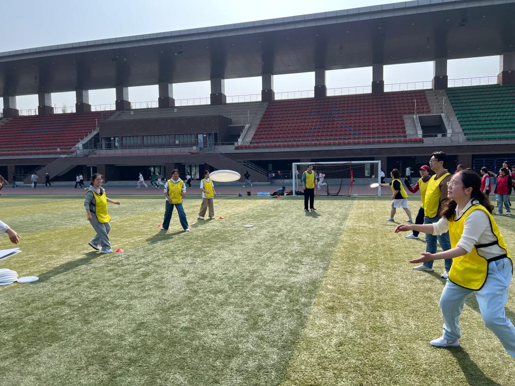 活动伊始,两院领导共同为飞盘友谊赛开球,活动在轻松热烈的氛围中拉开序幕。本次活动设置了飞盘接力赛、飞盘保龄球、飞盘九宫格及“守护安全·飞盘护航”国家安全教育日竞答挑战4个项目,各项目均以团队协作形式展开。