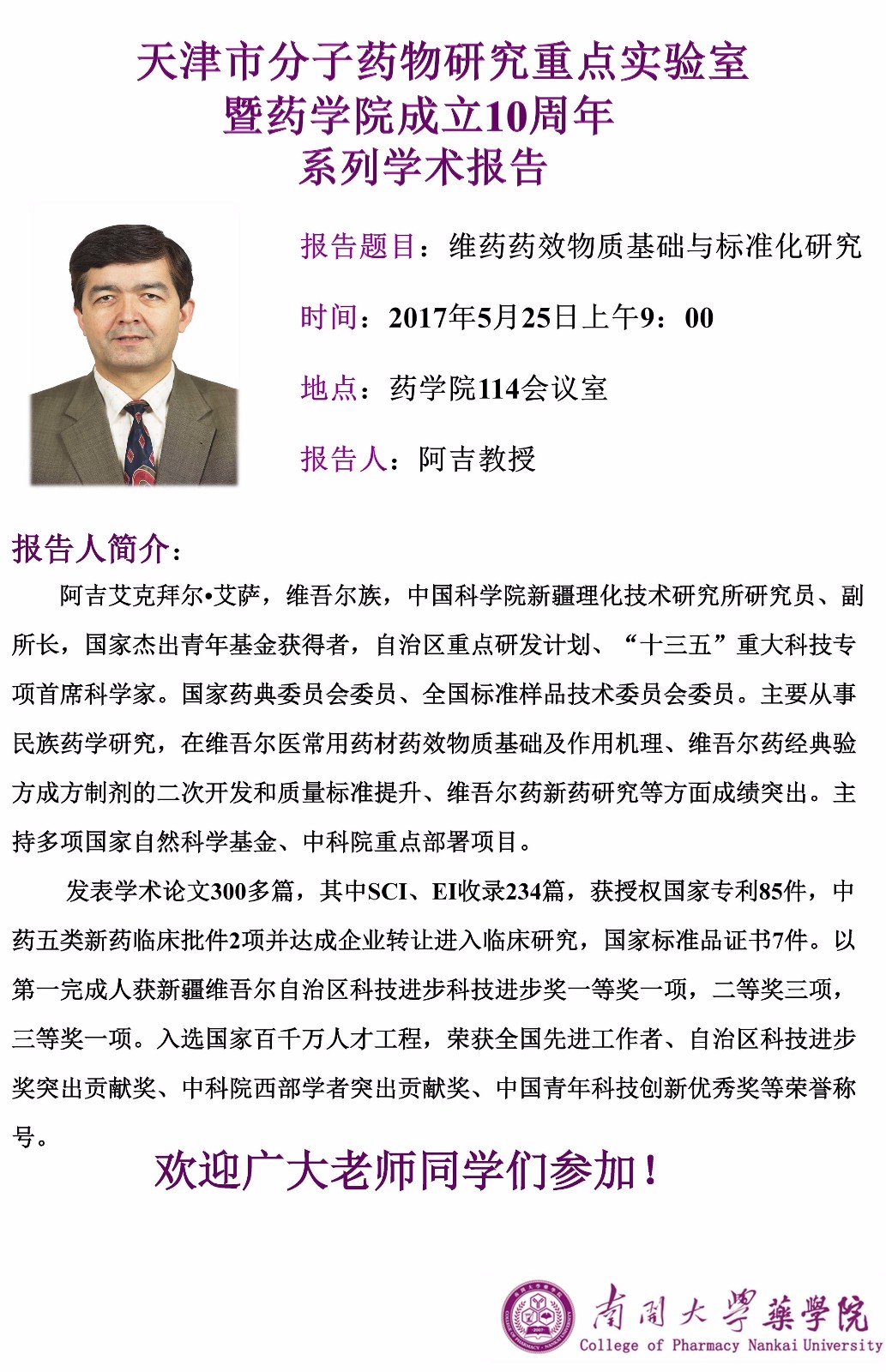 阿吉教授和姚广民教授学术报告2017/05/22