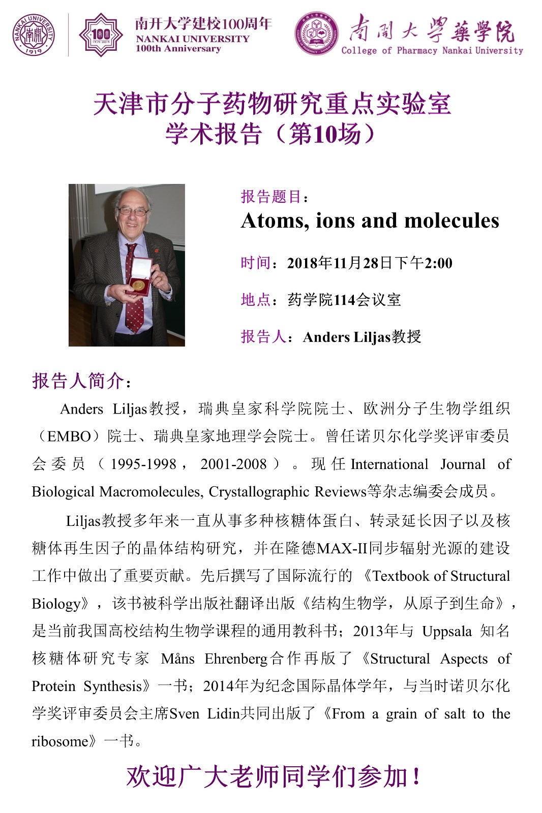 瑞典皇家科学院院士Anders Liljas教授学术报告2018/11/28
