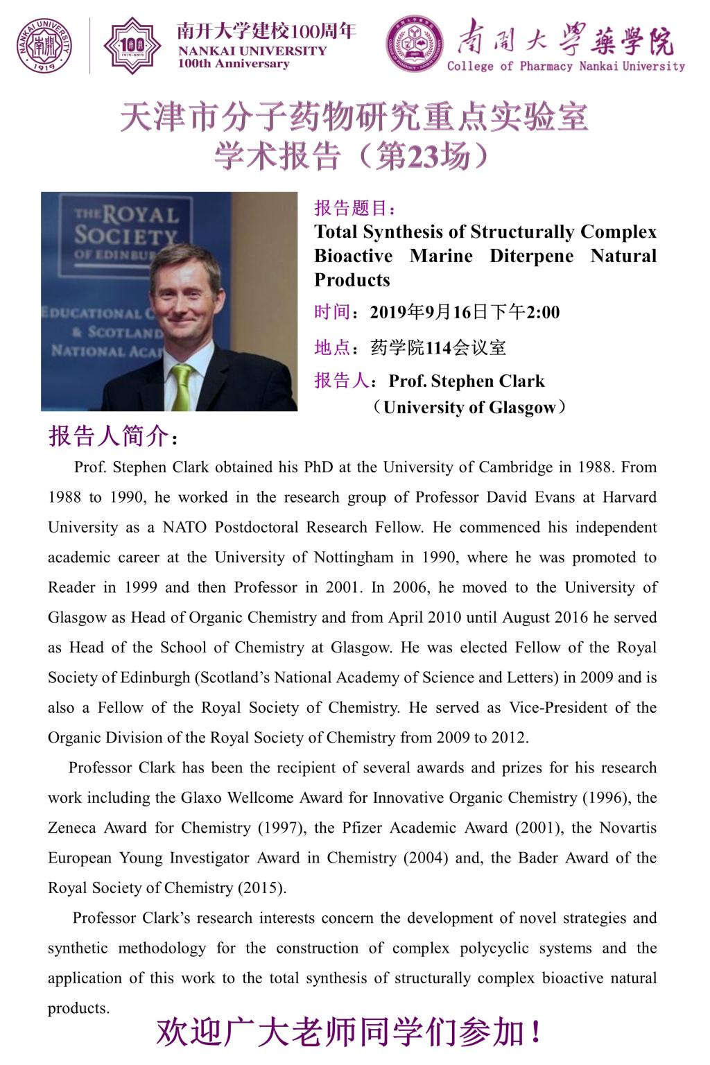 Stephen Clark教授学术报告2019/09/11