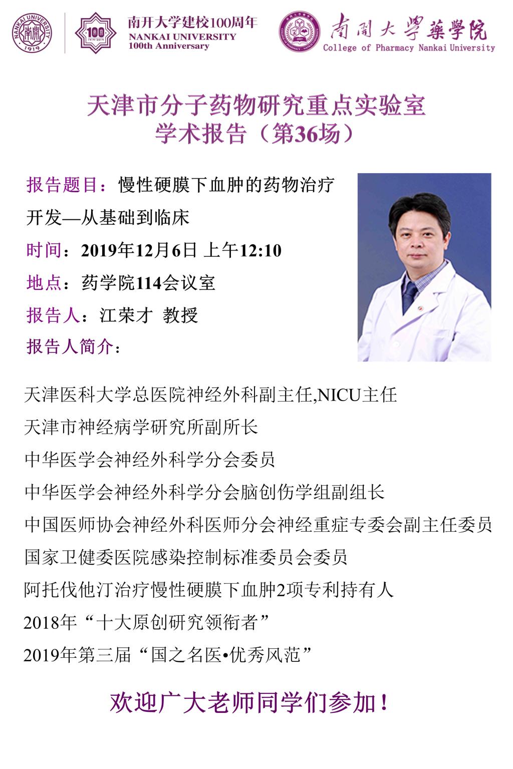 江荣才教授学术报告2019/12/03