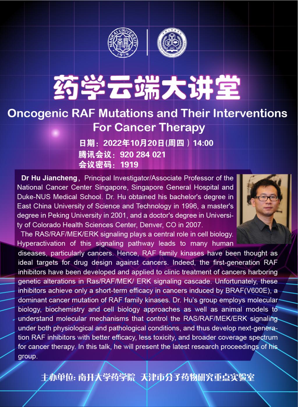 药学云端大讲堂——Hu Jiancheng教授2022/10/17