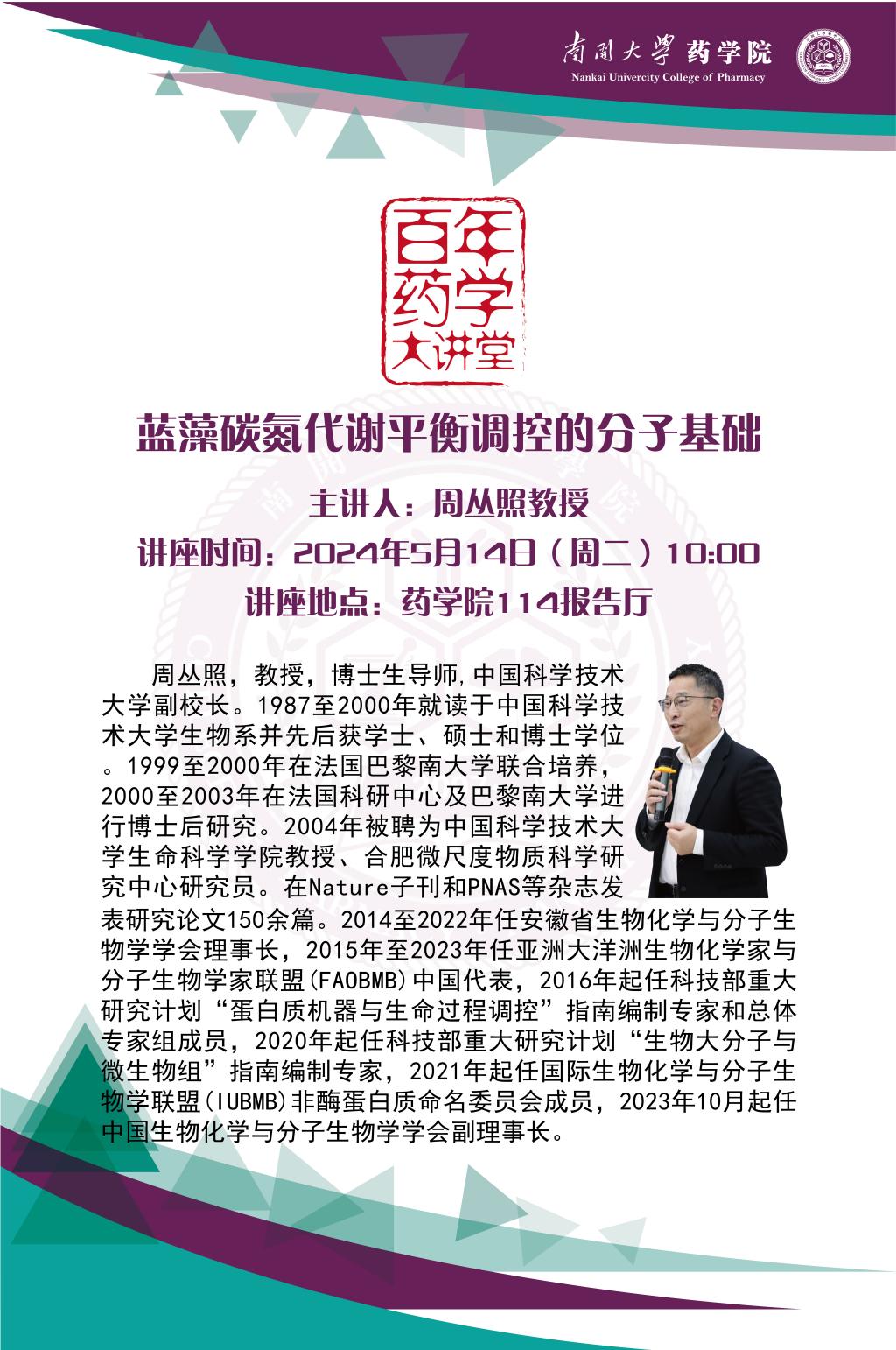百年药学大讲堂——周丛照教授学术报告2024/05/10