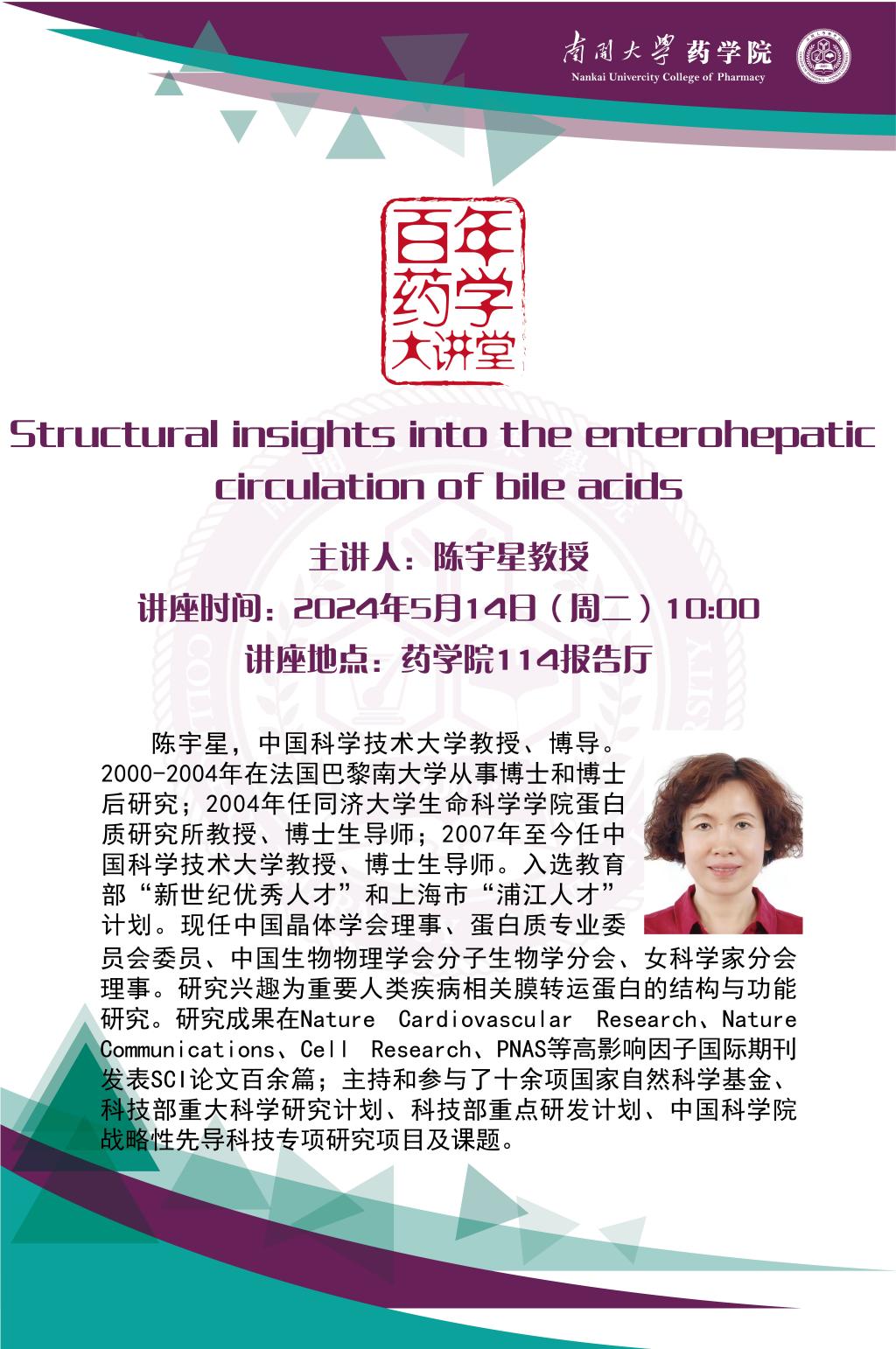 百年药学大讲堂——陈宇星教授学术报告2024/05/10