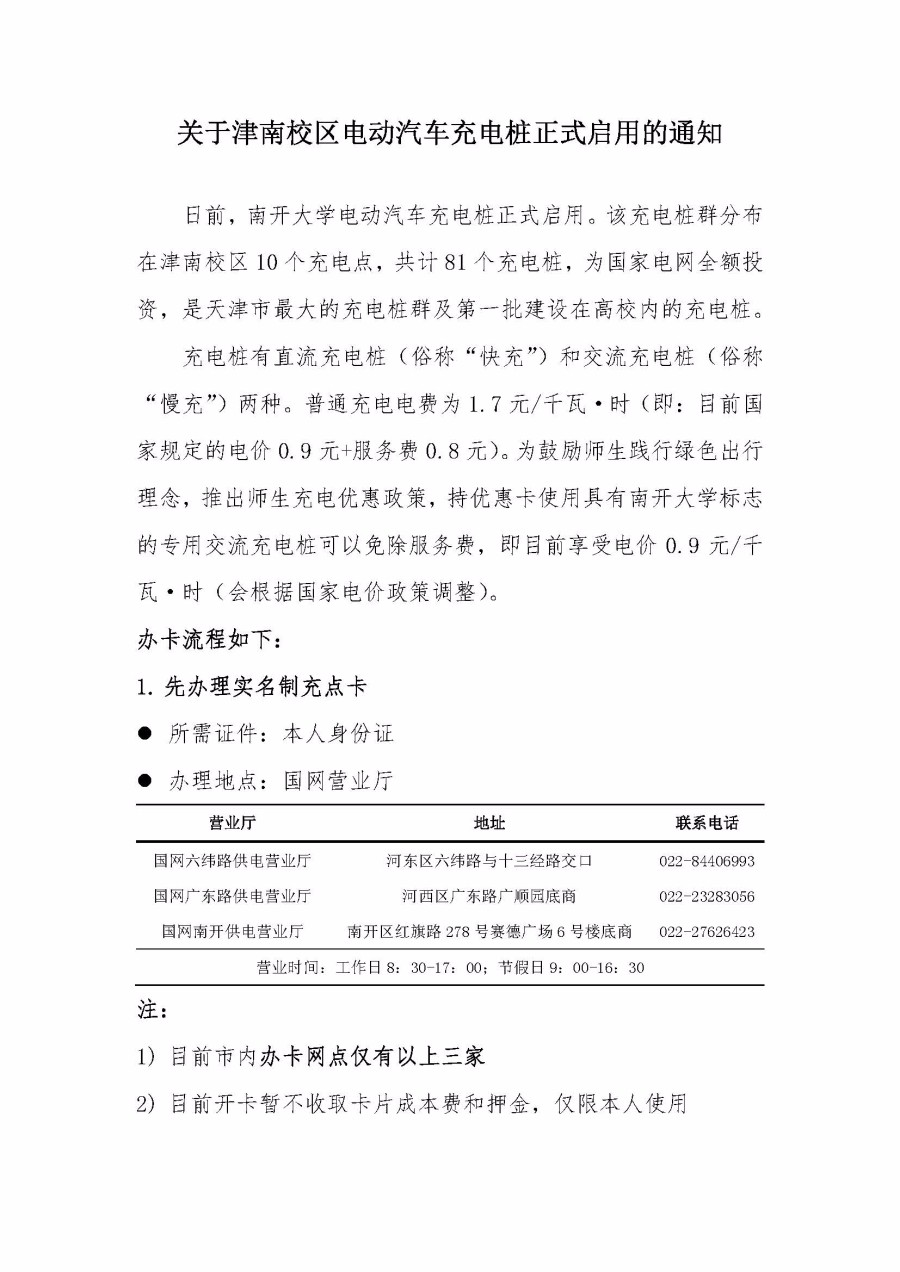 关于yl23455永利集团津南校区内电动汽车充电桩启用的通知
