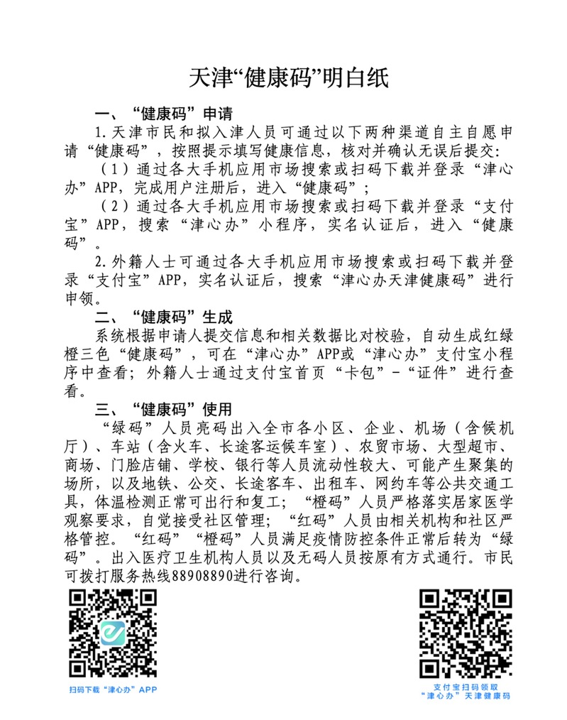 天津“健康码”明白纸